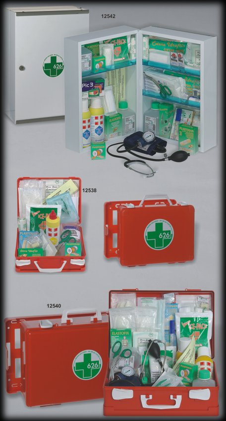 Armadietto pronto soccorso LUSSO Armadietto in metallo verniciato. Valido per allegato 1 DM388 per aziende o unita' lavorative con più di 2 lavoratori dipendenti