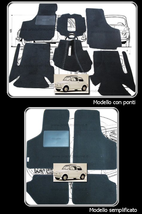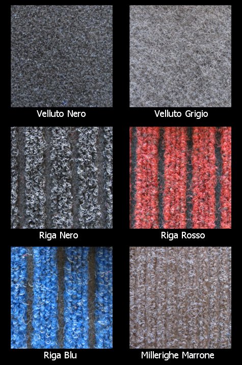 I tessuti disponibili con cui e' possibile realizzare i tappeti su misura per vecchia FIAT 500 F L sono i colori qui a fianco
