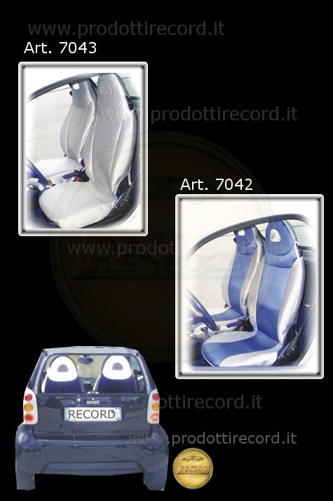 Coprisedili su misura per Smart TECNO Coppia coprisedili anteriori su misura "TECNO" bicolore o monocolore, poggiatesta con retina tessuto effetto metallico hi tech. Mod. Brevettato.