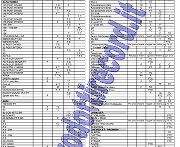 Consulta la lista delle auto disponibili per le quali possiamo offrire il tappeto su misura. Dato rileviamo continuamente nuovi modelli di autovetture la lista potrebbe non essere aggiornata. Si consiglia quindi chiedere telefonicamente o via mail al momento dell'acquisto.