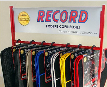 accessoriEspositori per supporto alla vendita di coprisedili e tappeti per auto. Espositori per tappeti auto moquette e gomma per negozi auto accessori, stazioni di benzina, autolavaggi. Indispensabile per presentare al pubblico gli articoli Prodotti Record.